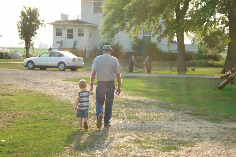 April’s photo shows 3-year-old Micah Brandenburg walking hand in hand with his grandfather, Henry Bents. Captured in 2007, the photo features the family farmhouse before a tornado later destroyed it. Henry has also passed since the photo was taken, giving it a special significance to Mark’s family.
